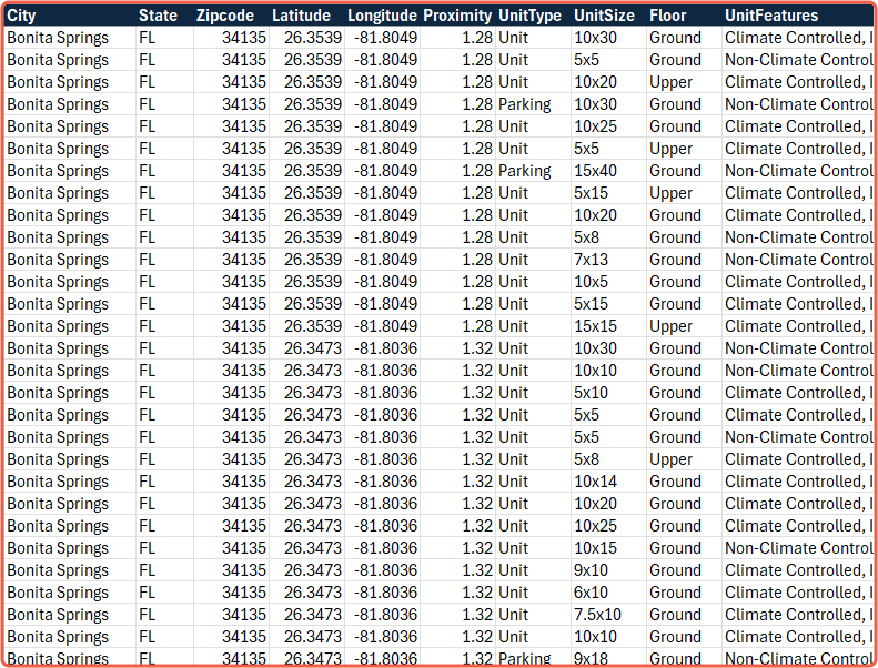 Self-Storage Rate Data APIs & Custom Reports