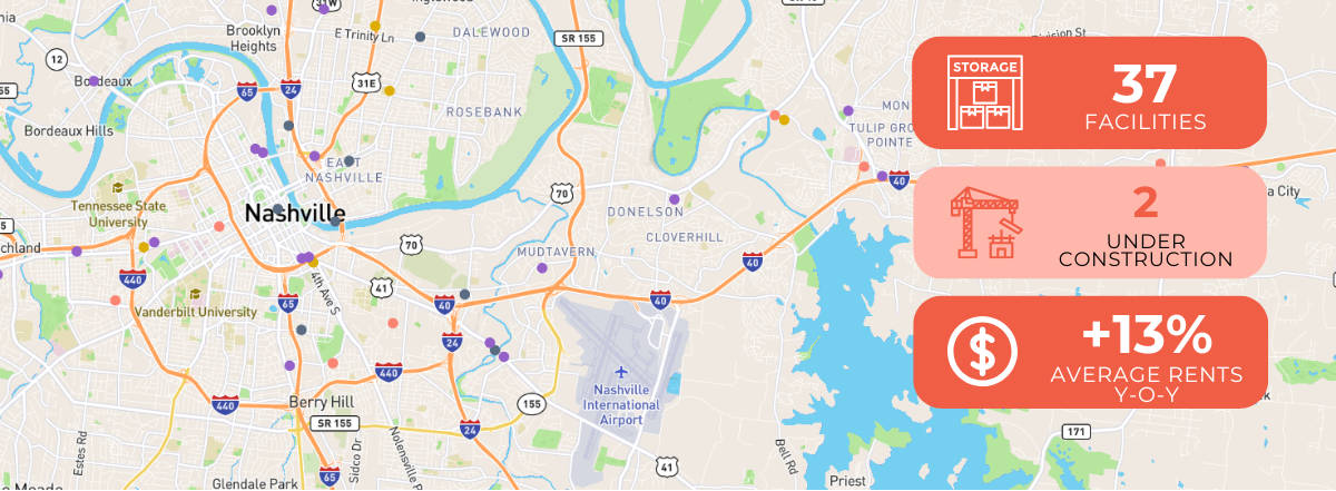 Nashville’s self-storage market mirrors this energy. Within just five miles of the city center, 37 facilities are in operation and two more are underway, while 32 additional projects are planned across the metro area, reflecting deep confidence among developers and investors. After a period of rent declines that once cooled optimism, the market has rebounded with average rents up more than 13% over the past year, supported by population growth, new housing, and major corporate relocations such as Oracle’s, firmly positioning Nashville among the Southeast’s most promising markets for continued expansion.
