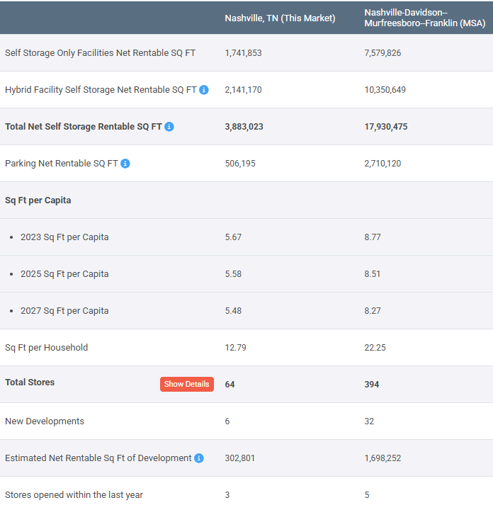 Want deeper insights on Nashville or other markets? Explore facility counts, rate trends, demographic shifts, new development activity and more with StorTrack’s Explorer platform.