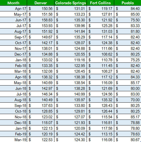 For this analysis, we look at a primary, secondary and tertiary markets in Colorado. According to research firms, in 2018, the amount of rentable square feet in the Denver metro area increased by 23 percent, with the addition of 37 new facilities to the market. It’s no surprise here that Colorado developers are looking into markets outside of the metro areas to build new supply. We take a look at the rates in these markets to see how the construction of new supply has impacted rates in the area.