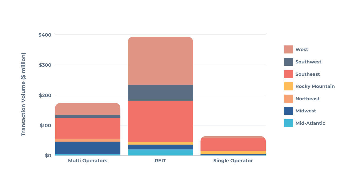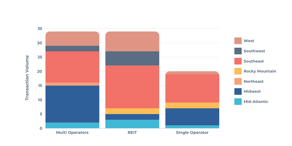 While less active overall, Single operators made a notable impact, completing over ten transactions totaling $43 million in the Southeast. Standout deals included Washington Road Storage’s 197,262-square-foot facility in Evans, Georgia, which sold for $17.7 million, and South Andrews Storage’s 12,710-square-foot facility in Fort Lauderdale, Florida, built in 1955 and sold for $3.7 million.
