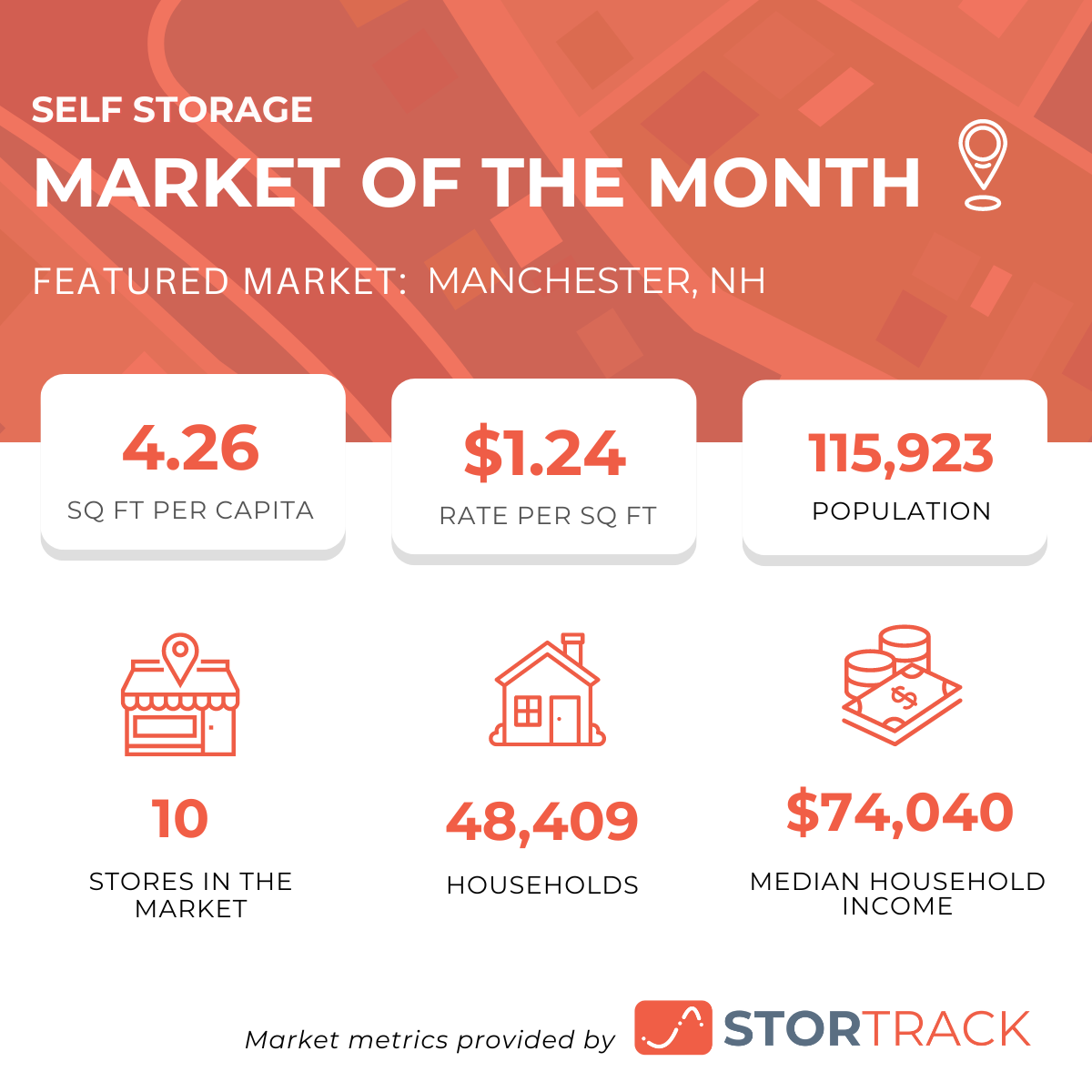 StorTrack’s featured market this month is Manchester, NH. Manchester is a city on the Merrimack River in southern New Hampshire; located in the heart of New England and is the largest convention, sports, entertainment, and arts & cultural destination in New Hampshire.