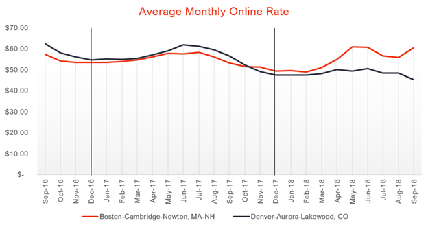 We analyzing the year-on-year average Online rates, the Boston-Cambridge-Newton MSA again showed the highest increase while Denver-Aurora-Lakewood again showed the largest decrease in rates.